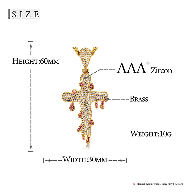 Turn heads with the Iced Out Dripping Cross Pendant with Rope Chain, a bold fusion of faith and fashion. This statement piece features a unique dripping cross design fully encrusted with sparkling cubic zirconia stones, paired with a classic stainless steel rope chain. Perfect for hip hop jewelry lovers, this set delivers next-level shine and street-ready style — all at a price that keeps you looking icy without going over budget.